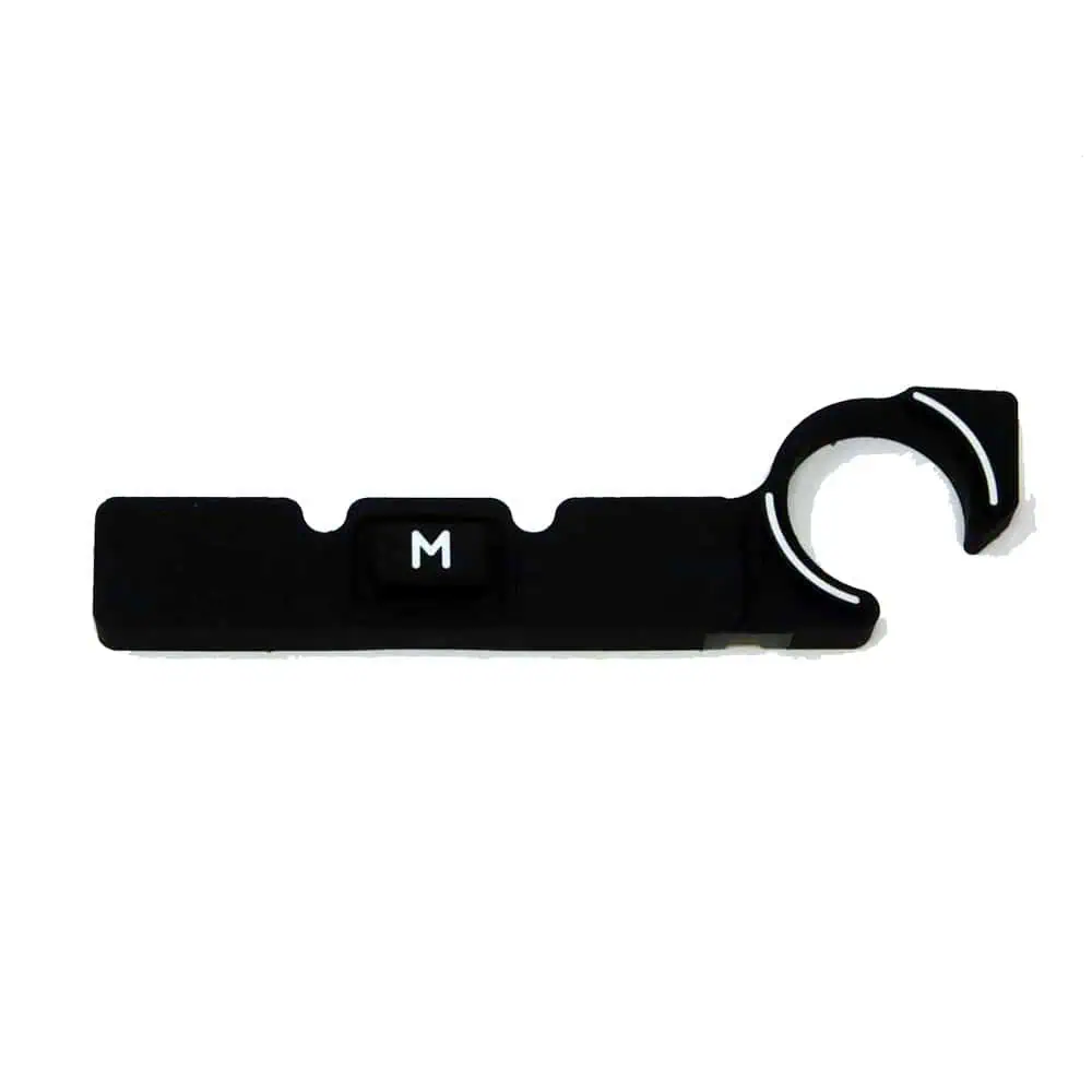 One of our Aerospace customers designed a molded silicone button light guide that is painted black over white with laser etched graphics. We subcontract the clear silicone molded part and handle the painting and laser etching in-house.